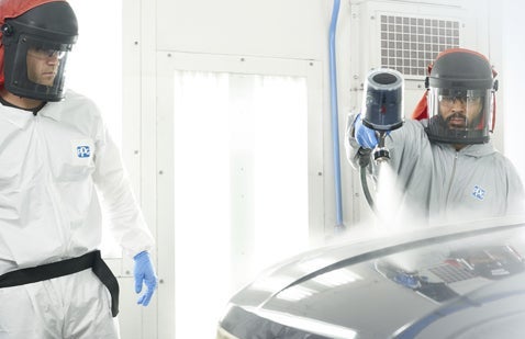Demonstrates blend repair techniques for metallic, pearl and solid color finishes, including instruction on the two gun cup approach for creating a wet bed or applying a blending clear to create a smooth transition to the original finish.